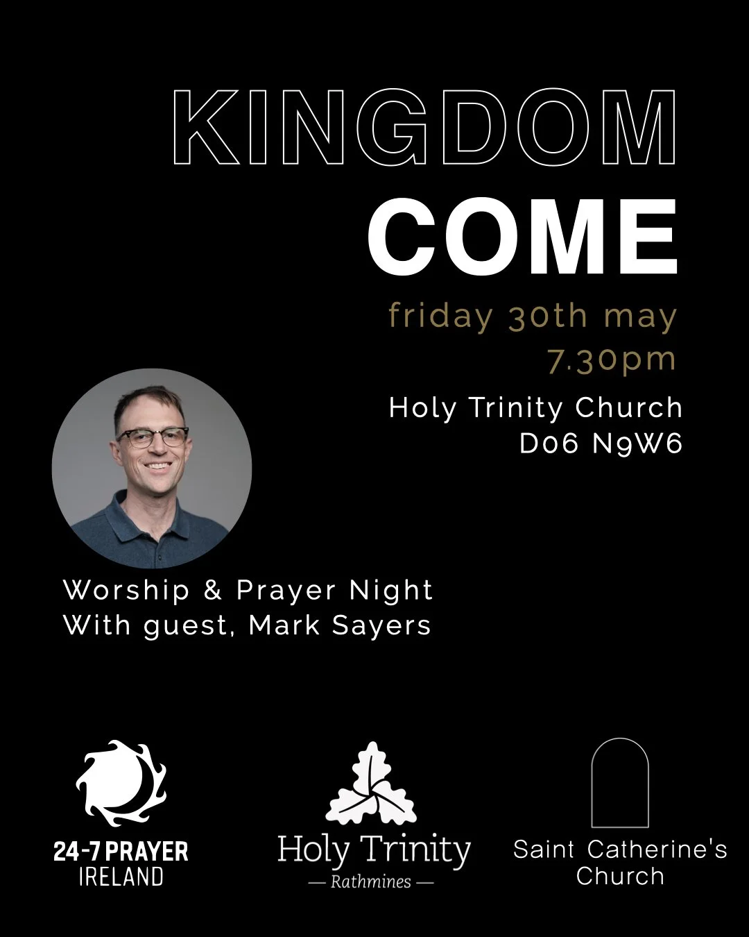 Holy Trinity Rathmines will also be hosting a worship and prayer night called Kingdom Come where Mark will be speaking on May 30th. (No event registration necessary.)
